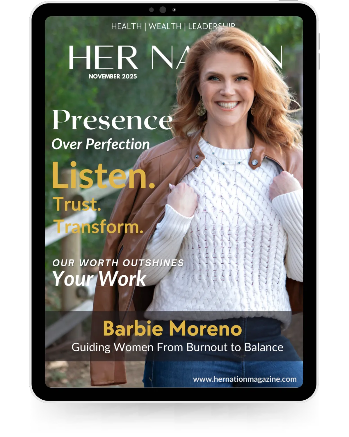 In this Her Nation Magazine feature, Barbie Moreno shares her journey from corporate burnout to embodied healing and inner alignment. She opens up about the overwhelm and exhaustion that shaped her path and how she now helps women slow down, reconnect with their needs, and create a life that feels grounded and nourishing.